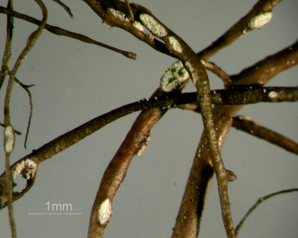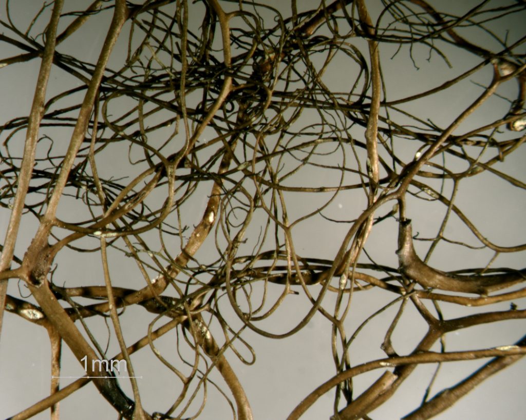 | Field Characters | Fruticose, hair-like chlorolichen. Brown, tufted or shrubby, rarely pendant. Branches dull, pale brown, olive-green or dark brown, sometimes with a pale base but just as often not. Branches forming angular nodes, typically acute angled. Soralia typically abundant, fissural, with farinose soredia, lacking isidia. While often desribed as lacking pseudocyphellae, B. vrangiana, which was synonymized with B. fuscescens, has linear pseudocyphellae.