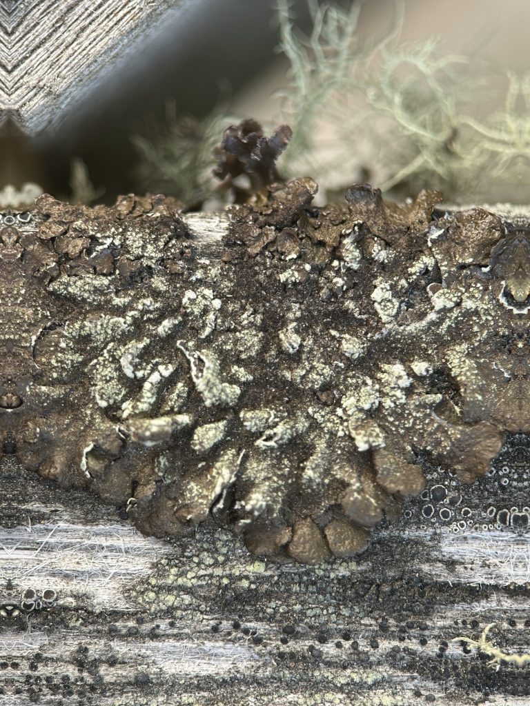 | Field Characters | Small foliose chlorolichens. Thalli appressed to the substrate, except at the very edges, forming pleated rosettes. Colonies can be as large as a human hand. Cortex greenish brown to bronze brown, often shiny. Pseudocyphellae absent. Soralia produced from abraded, laminal patches, most common centrally, appearing whitish to greyish. Isidia often present, tiny, cylindrical, mixed in with soredia. Apothecia rare. |