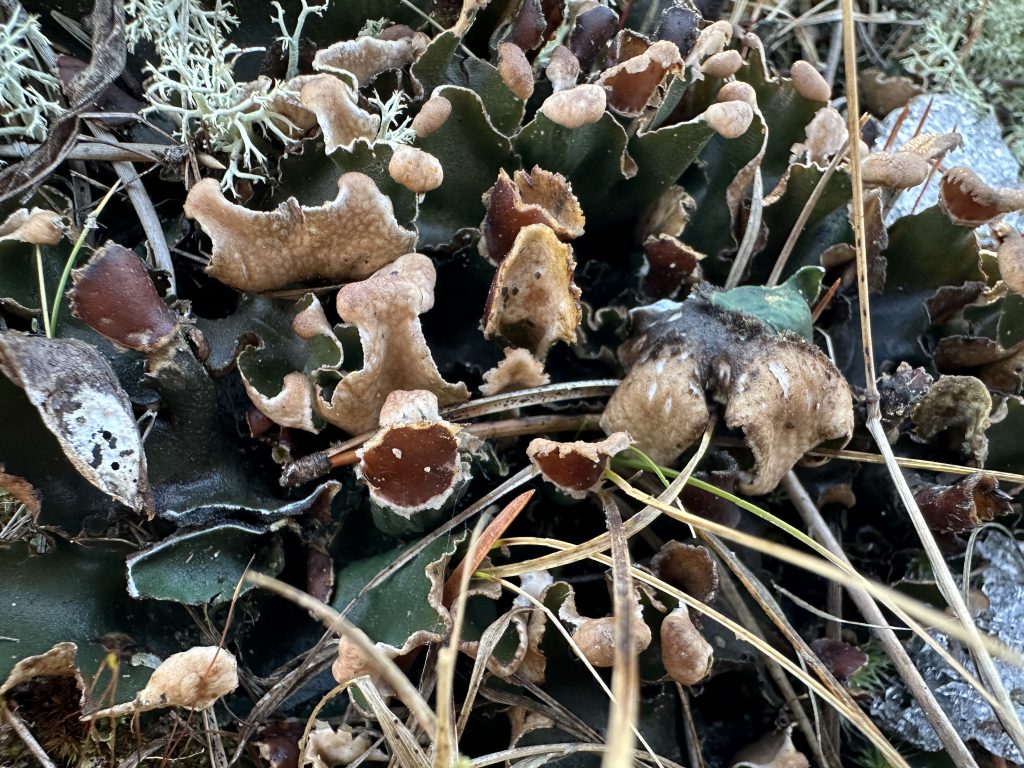 Peltigera apthose & P. leucophlebia photomorphs: it can be very difficult to detect the photomorphs if they are not associated with their tripartite form. Some literature suggests they have extensive maculae. Regardless, they are apparently rare. |