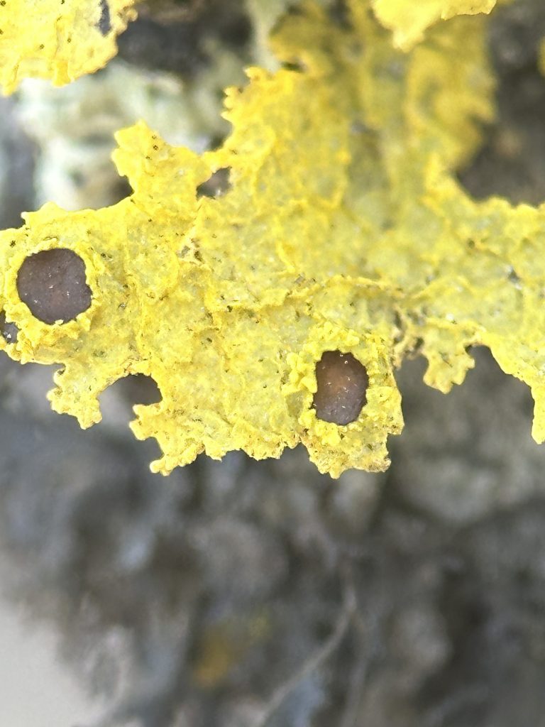 - Vulpicida canadensis apothecia close-up, Jackman Flats, BC
