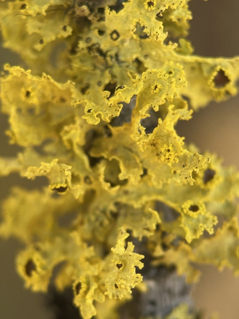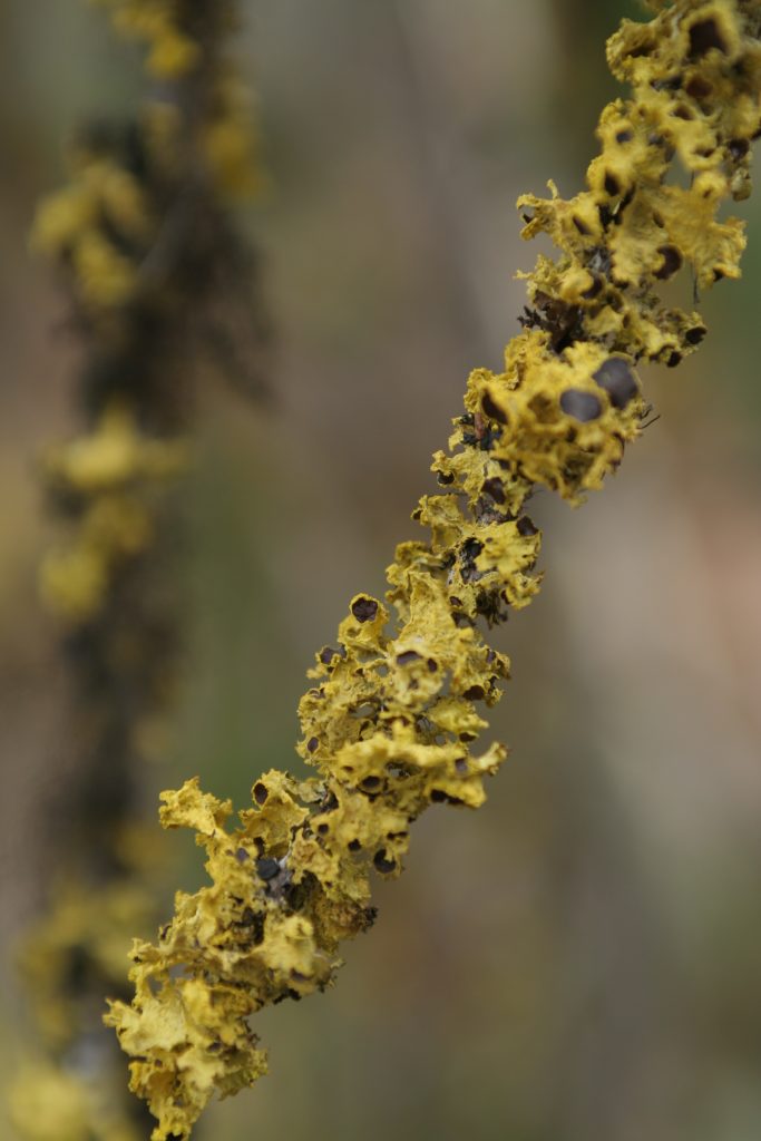 Vulpicida pinastri: sorediate, not fertile.