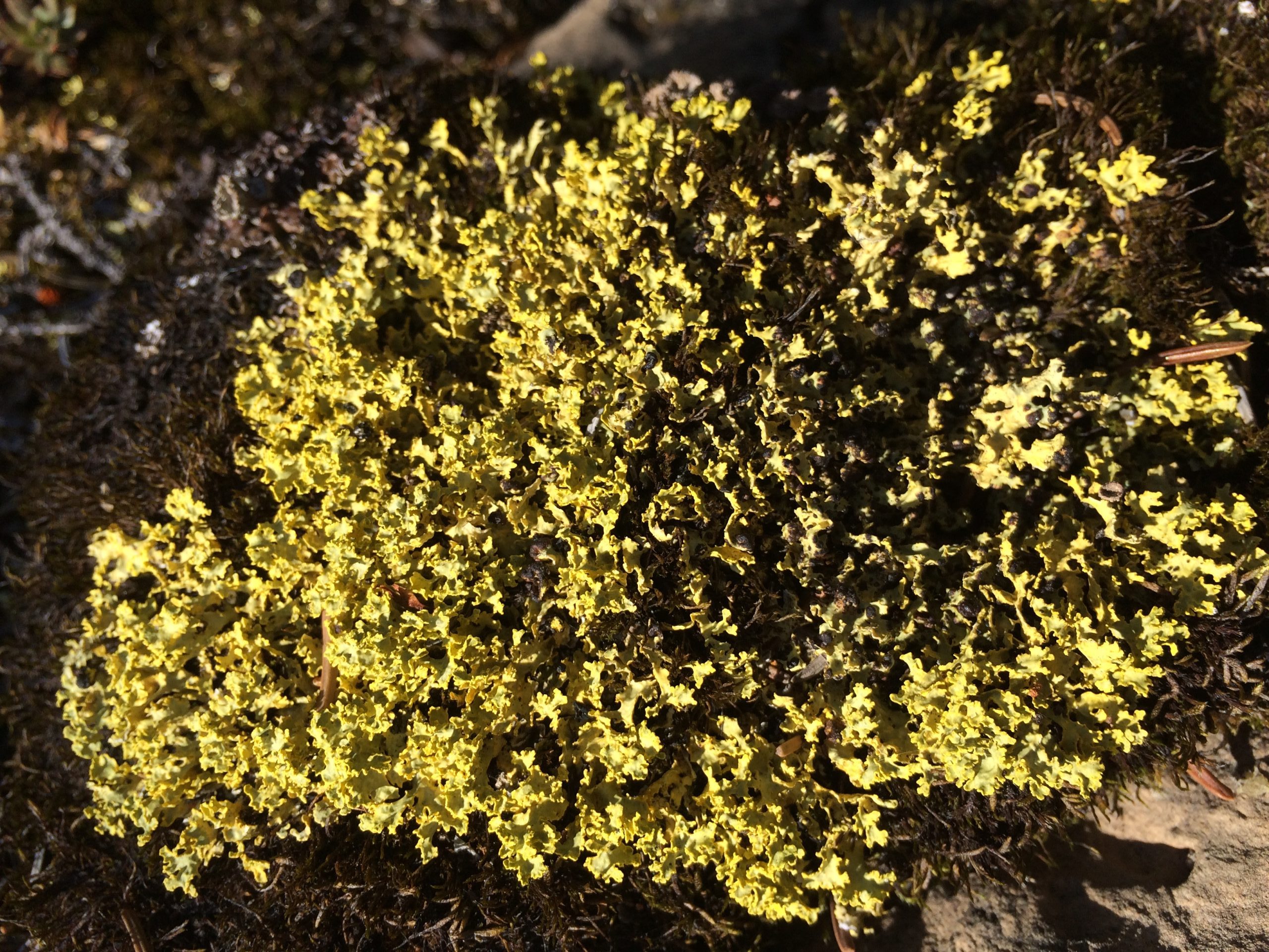Field Characters Small, leafy chlorolichen. Thalli bright yellow, composed of frilly, ruffled, or wrinkled lobes to 0.5 cm wide, loosely attached to ascending. Cortices wrinkled, pale to breight yellow, the color darkened marginally. Rhizines absent. Medulla yellow. Vegetative propagules absent, apothecia not known.