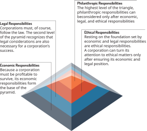 In addition to what is required by laws and regulations, society expects businesses to operate and conduct their affairs in an ethical fashion. Taking on ethical responsibilities implies that organizations will embrace those activities, norms, standards, and practices that even though they are not codified into law, are expected nonetheless. Part of the ethical expectation is that businesses will be responsive to the “spirit” of the law, not just the letter of the law. Another aspect of the ethical expectation is that businesses will conduct their affairs in a fair and objective fashion even in those cases when laws do not provide guidance or dictate courses of action. Thus, ethical responsibilities embrace those activities, standards, policies, and practices that are expected or prohibited by society even though they are not codified into law. The goal of these expectations is that businesses will be responsible for and responsive to the full range of norms, standards, values, principles, and expectations that reflect and honor what consumers, employees, owners, and the community regard as consistent with respect to the protection of stakeholders’ moral rights.