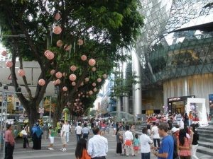 Take an imaginary walk down Orchard Road, the most fashionable shopping area in Singapore. You’ll pass department stores such as Tokyo-based Takashimaya and London’s very British Marks & Spencer, both filled with such well-known international labels as Ralph Lauren Polo, Burberry, and Chanel. If you need a break, you can also stop for a latte at Seattle-based Starbucks.