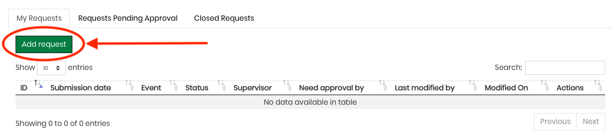You then click on “Add Request.” Note the tabs above that will organize your pending and closed requests too.