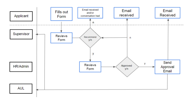 You are able to track the progress of your request and it is emailed to whoever needs to approve it next without your intervention. The following flowchart outlines how the request will proceed once it is submitted.